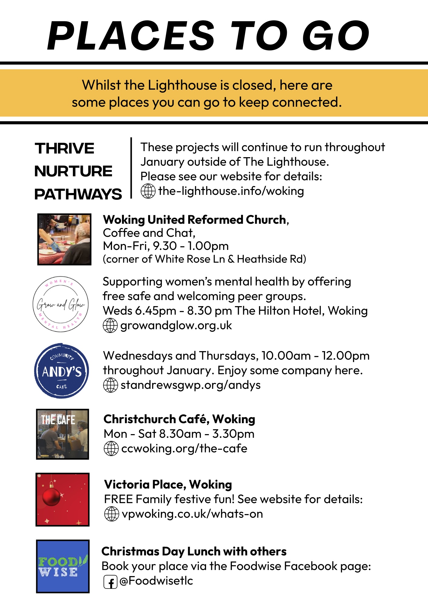 Please do read the below carefully for our closure dates at Woking Lighthouse this Christmas.
