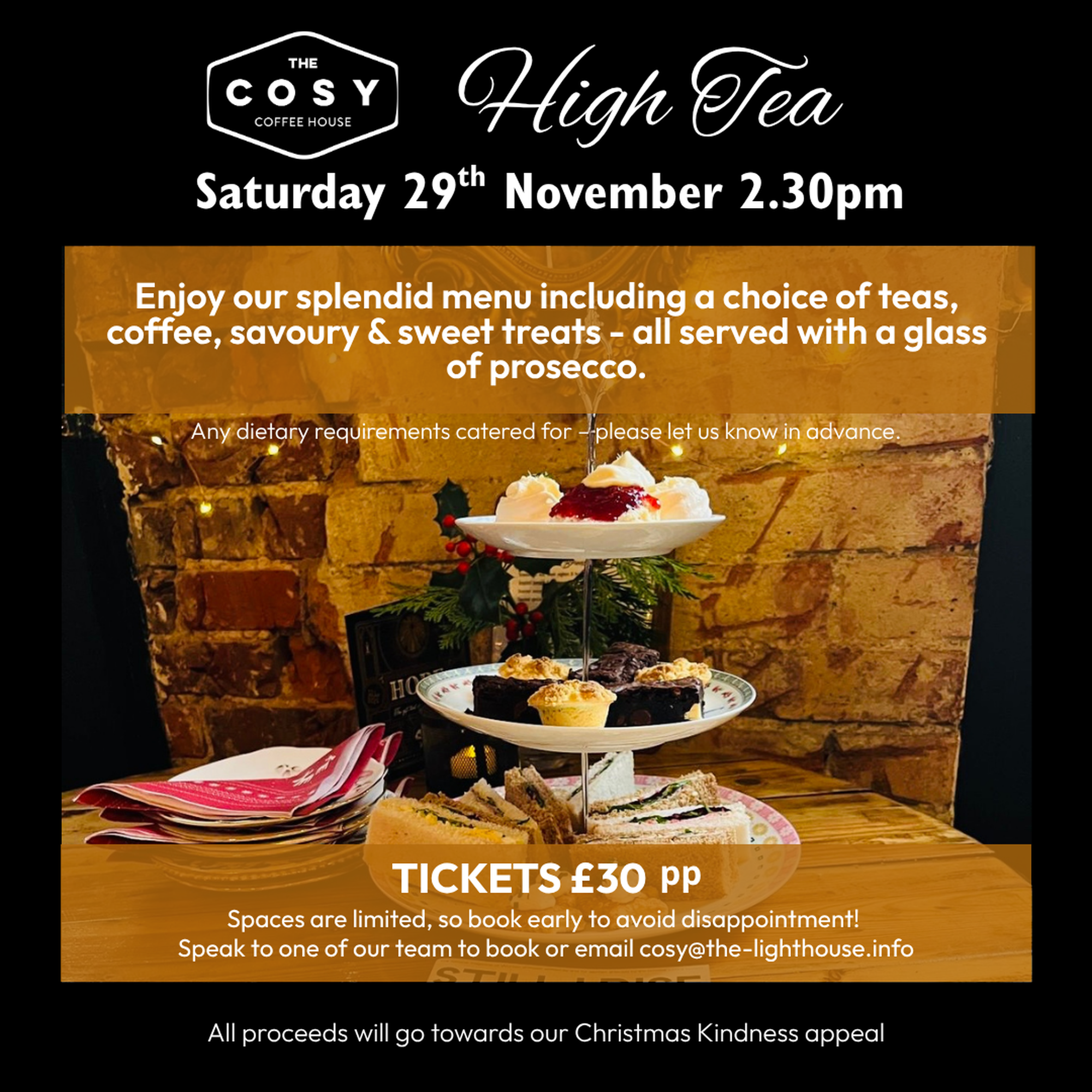 If you have a larger group you'd like to bring to the Cosy, we may still be able to accommodate you - do just send us an email and we'll see what we can organise.